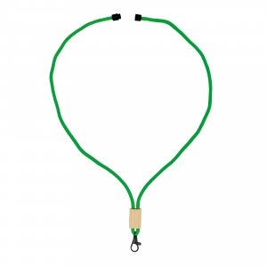 Artikel-Nr: ART95306N0031Kordel-Lanyard aus R-PET Paracord mit Kunststoff-Sicherheitsverbindung und schwarzem Karabiner und Panikverschluss. Das Schlüsselband ist mit einem Bambusschieber verstellbar, der viel Platz für das Branding bietet.
