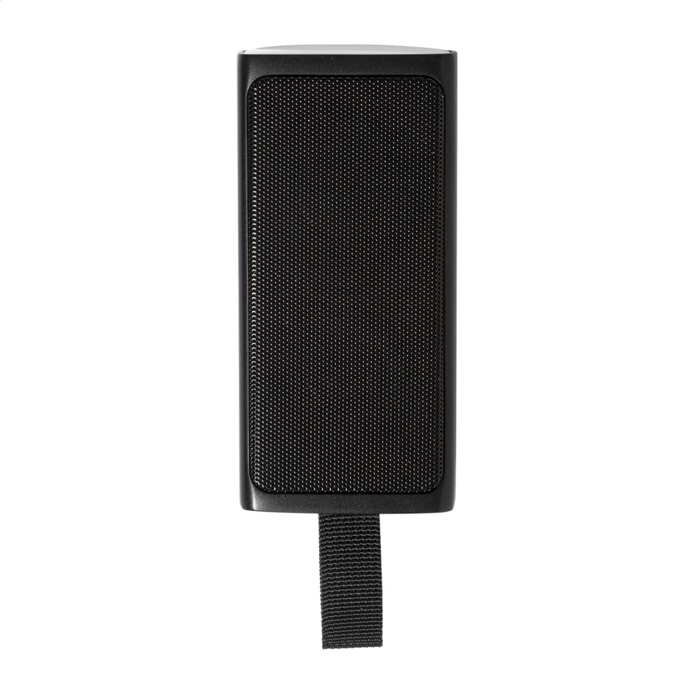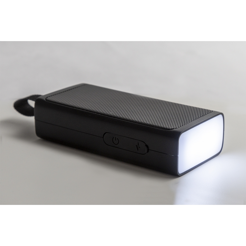 Artikel-Nr: AND864140-10Lautsprecher aus recyceltem ABS mit Lautsprechernetz aus Metall, LED-Taschenlampe und magnetischer Funktion sowie eingebautem Akku (500mAh). Inkl. USB-Ladekabel.