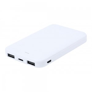 Artikel-Nr: AND733949-01Powerbank aus recyceltem ABS-Kunststoff mit 5000 mAh Akku, 2 USB und 1 UST-C Ladeports und USB-C Eingangsport. Inkl. USB-Ladekabel.