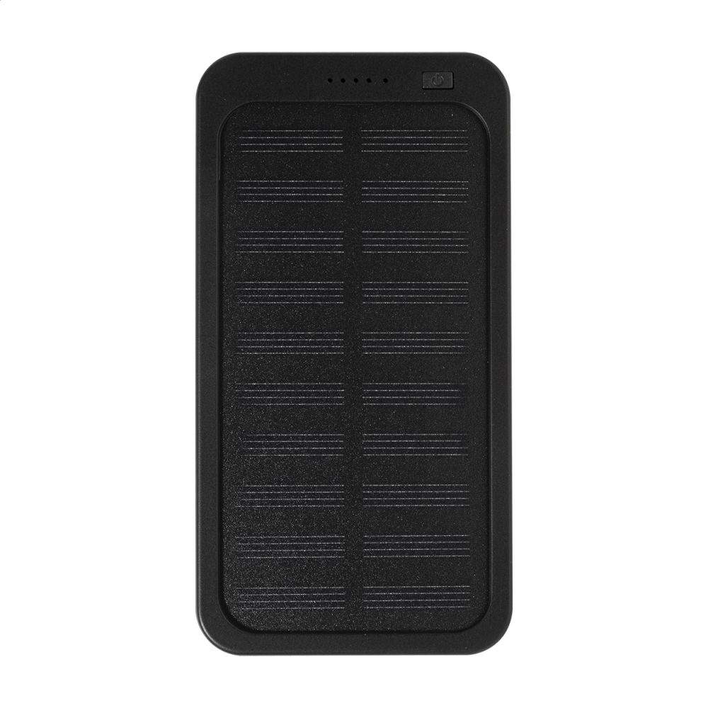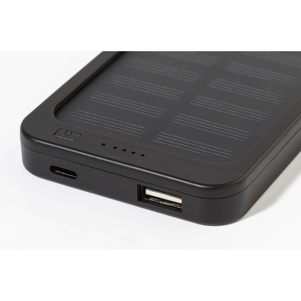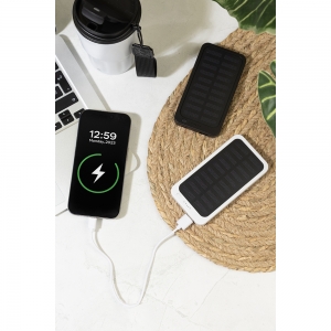 Artikel-Nr: AND864138-10Powerbank aus recyceltem ABS mit eingebautem Solar-Charger und 4000 mAh-Akku. Mit 1 USB, 1 USB-C Ladeports und USB-C Eingangsport. Inkl. USB-Ladekabel.