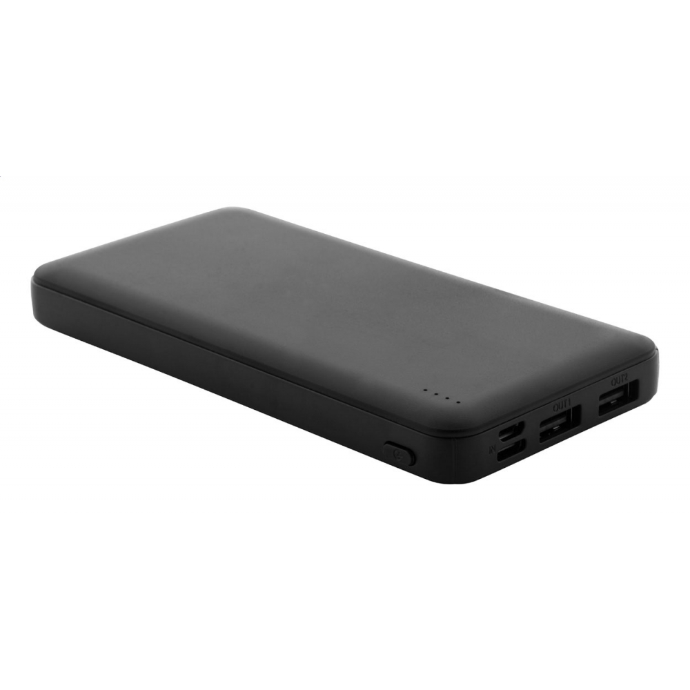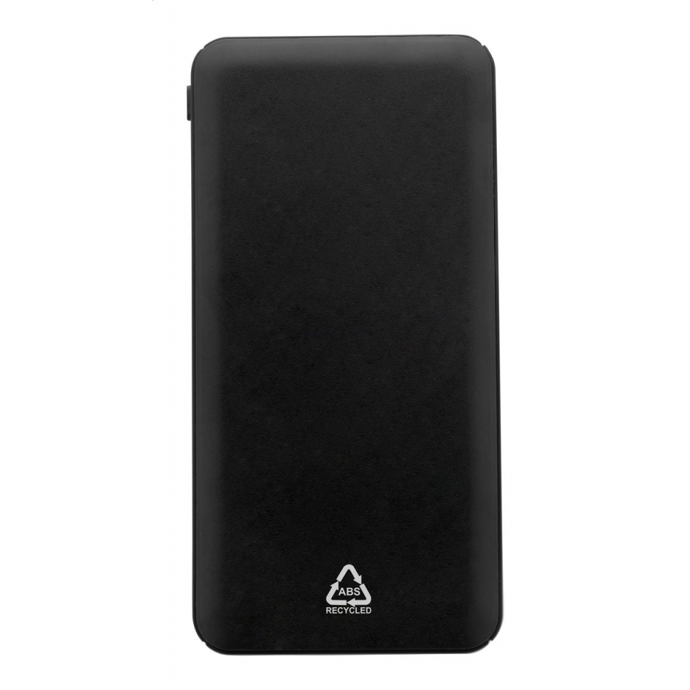 Artikel-Nr: AND864049-10Powerbank aus recyceltem ABS Kunststoff mit 10000 mAh Akku, 2 USB und 1 USB-C Ladeports, Mikro USB und USB-C Eingangsports. Inkl. USB-Ladekabel.