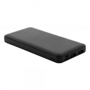 Artikel-Nr: AND864049-10Powerbank aus recyceltem ABS Kunststoff mit 10000 mAh Akku, 2 USB und 1 USB-C Ladeports, Mikro USB und USB-C Eingangsports. Inkl. USB-Ladekabel.
