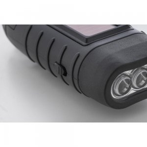 Artikel-Nr: AND864104-10Taschenlampe aus recyceltem ABS mit 3 LEDs, integrierten Solar- und Dynamo-Ladegeräten und Karabinerhaken.
