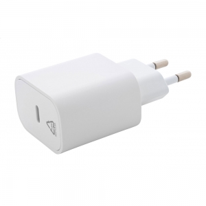 Artikel-Nr: AND864054-01Wandladegerät aus recyceltem ABS mit Schnellladefunktion und 1 USB-C-Anschluss. Unterstützt Schnellladetechnologie (PD20W / QC3.0). Mit 2-poligem Euro-Stecker.