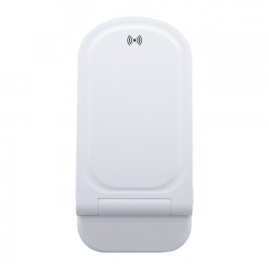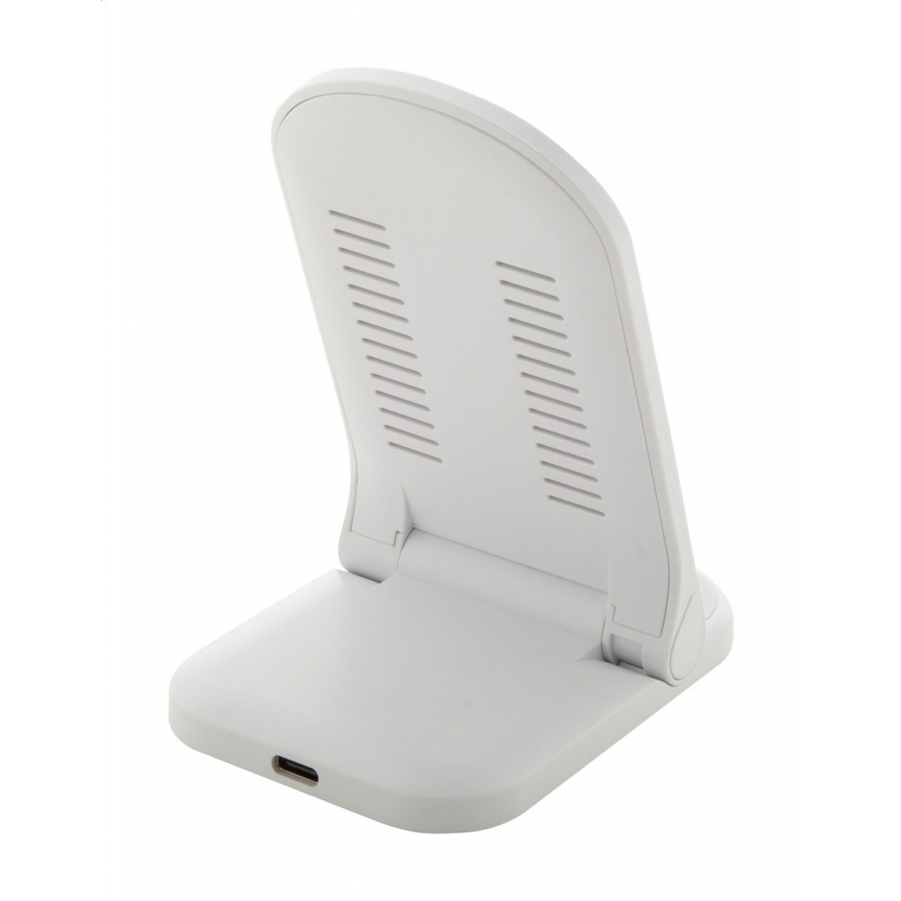 Artikel-Nr: AND864045-01Faltbarer und regulierbarer Handyhalter aus recyceltem ABS-Kunststoff mit eingebautem Wireless-Fastcharger (15W). Inkl. USB-Ladekabel.