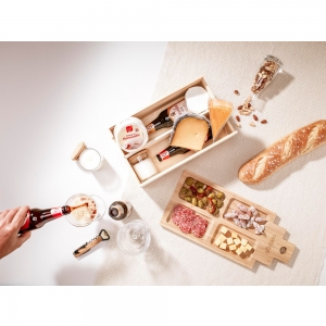 Artikel-Nr: CLP269014-945Rackpack Casa de Tapas Large: Weinkiste und Snackplatte in einem. Der Bambus Deckel dieser Geschenkbox ist tatsächlich eine luxuriöse Tapasplatte in der Form eines holländischen Kanalhauses, die aus Bambus gefertigt wurde. Die Vorderseite des Bambustellers hat Fächer für Tapas, die Rückseite kann als Schneidebrett verwendet werden. Muchas gracias! Rackpack: eine Wein-Geschenkbox aus FSC 100% zertifiziertes Holz mit einem neuen zweiten Leben! • geeignet für zwei Flaschen Wein • Kiefernholz • Bambusholz: eine Alternative zu Baumholz - Bambus kann innerhalb von 5 Jahren geerntet werden (Bäume brauchen 30 bis 120 Jahre) und aus der verbleibenden Wurzel wachsen 4 bis 7 neue Pflanzen • Wein nicht inklusive.