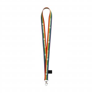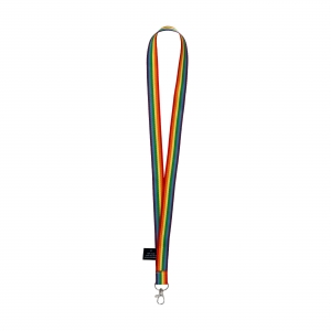 Artikel-Nr: CLP263298-009Lanyard in auffälligen und lebendigen Regenbogenfarben. Hergestellt aus 67% GRS-zertifiziertem RPET-Polyester. Mit Karabinerhaken aus Metall.