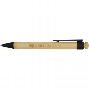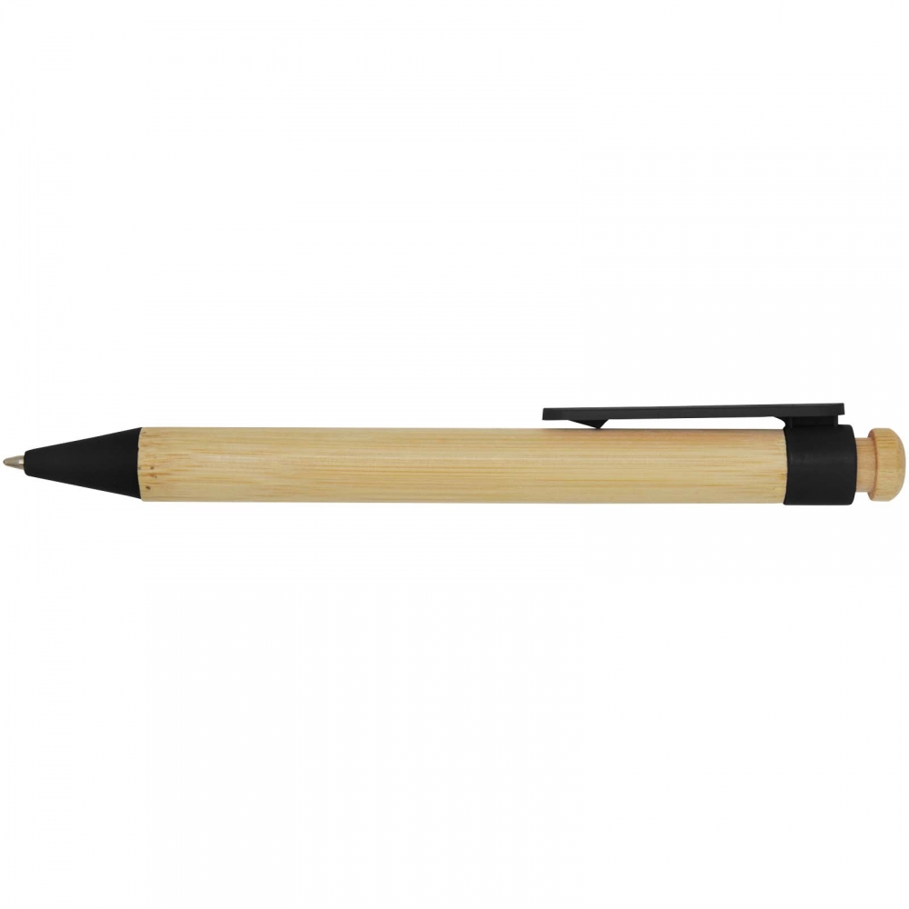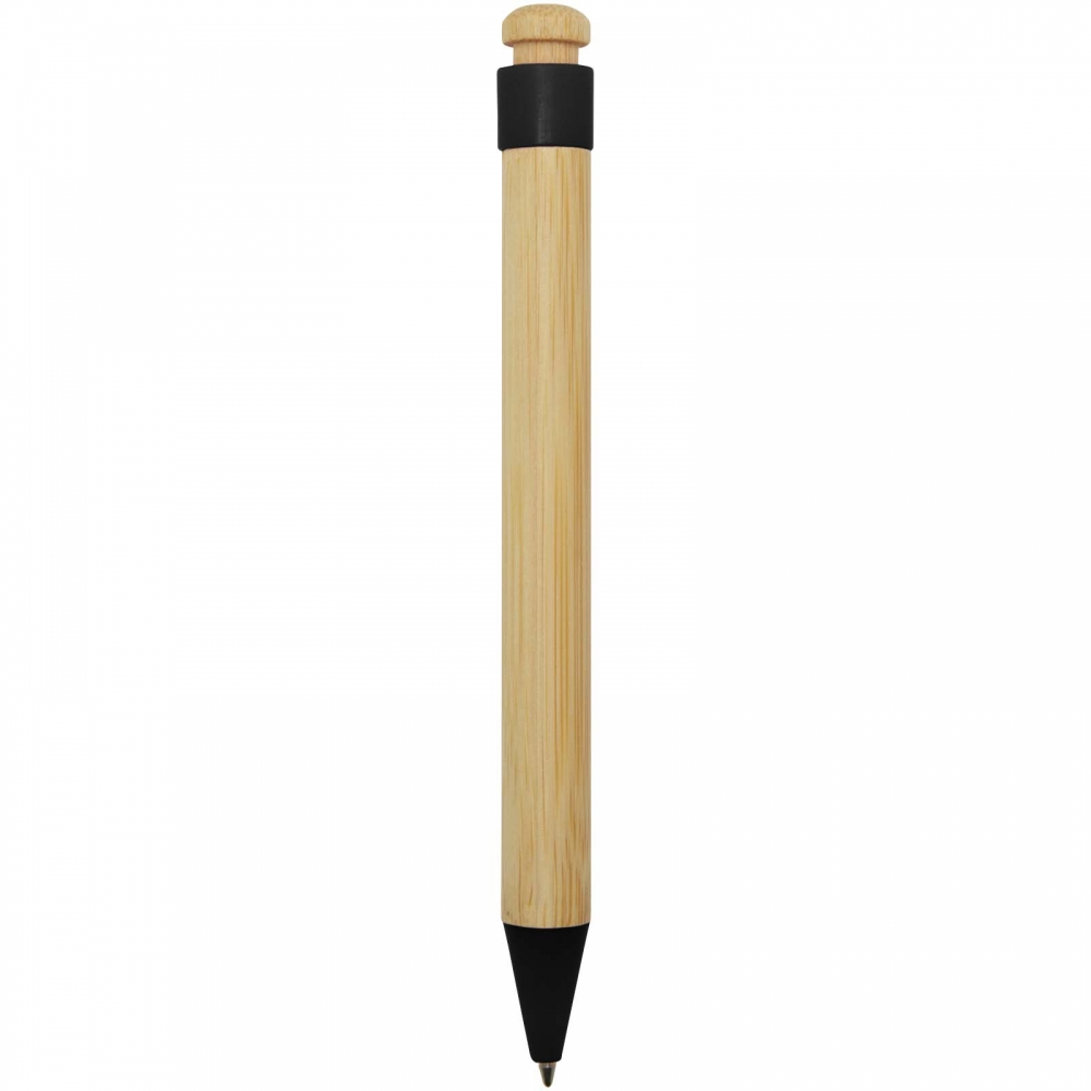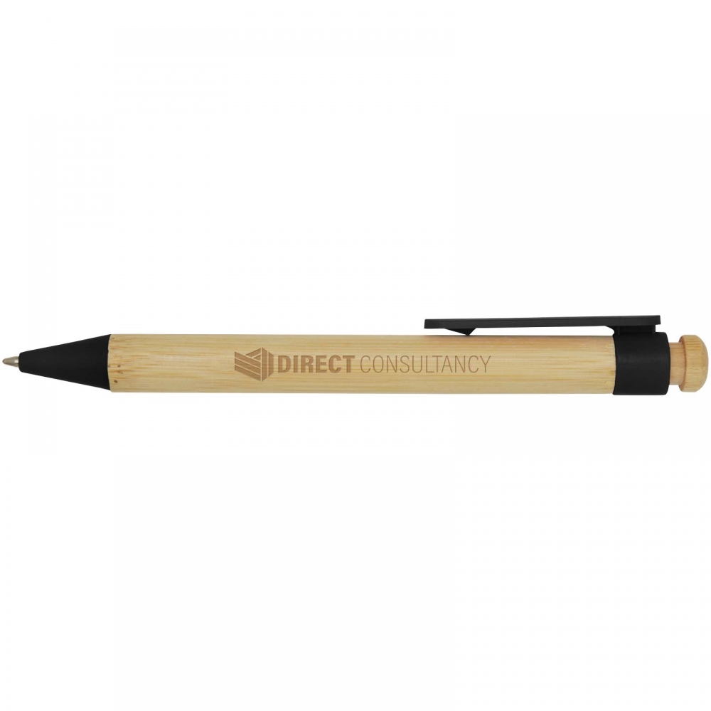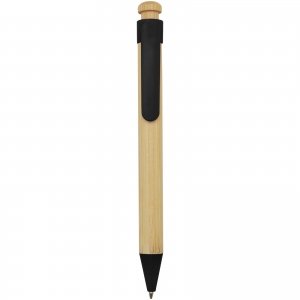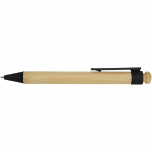 Artikel-Nr: CPO10602690Kugelschreiber mit Clip und Spitze aus recyceltem Kunststoff, Knopf und Schaft aus Bambus. Tintenfarbe: Schwarz. Schreiblänge: 1000 Meter. Schreibspitze: 1,0 mm.