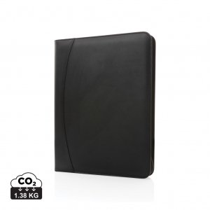 Artikel-Nr: XND774401Dieses schöne RCS rPU Deluxe-Tech-Portfolio mit Reißverschluss wird aus RCS (Recycled Claim Standard)-zertifiziert recycelten Materialien hergestellt. Die RCS-Zertifizierung gewährleistet eine vollständig zertifizierte Lieferkette der recycelten Materialien. Die glatte und luxuriöse Oberfläche verleiht der Mappe einen schicken Look. In der A4-Mappe finden Sie einen linierten 64 gr / m2 Recyclingpapier-Notizblock mit 20 Seiten. Im Inneren befindet sich zudem 1 Fach in Handygröße, ein Handyhalter, eine Stiftschlaufe und 2 Visitenkartenfächer. Hergestellt aus recyceltem, RCS-zertifiziertem PU. Gesamter Recyclinganteil: 14% basierend auf dem Gesamtgewicht des Artikels. PVC-frei.