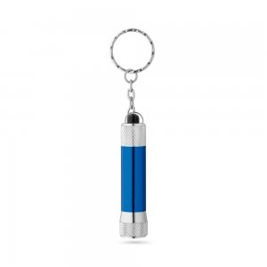 Artikel-Nr: PST95092-114Schlüsselanhänger aus Aluminium (92% recycelt) mit 3-Licht-LED-Taschenlampe. Enthält 3 LR44-Batterien. Ring: ø 25 mm | Produkt: ø15 x 70 mm | Kette: 37 mm | Gesamt: 115 x 25 x 15 mm