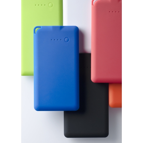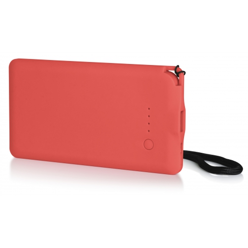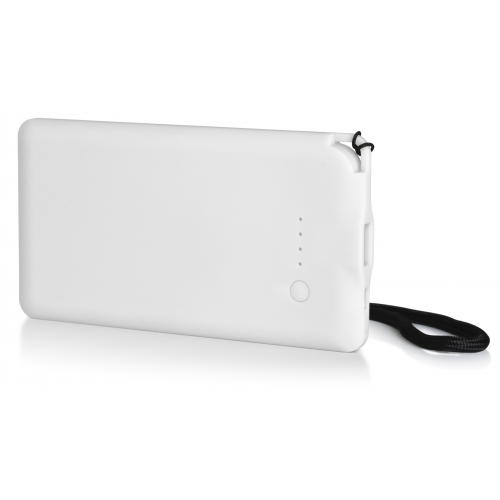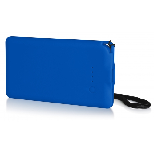 Artikel-Nr: A232CM5150Rechteckige trendy 4000 mAh Powerbank mit Gummi-Coating. Mit Trageband für einfaches Mitnehmen und Ladekabel.