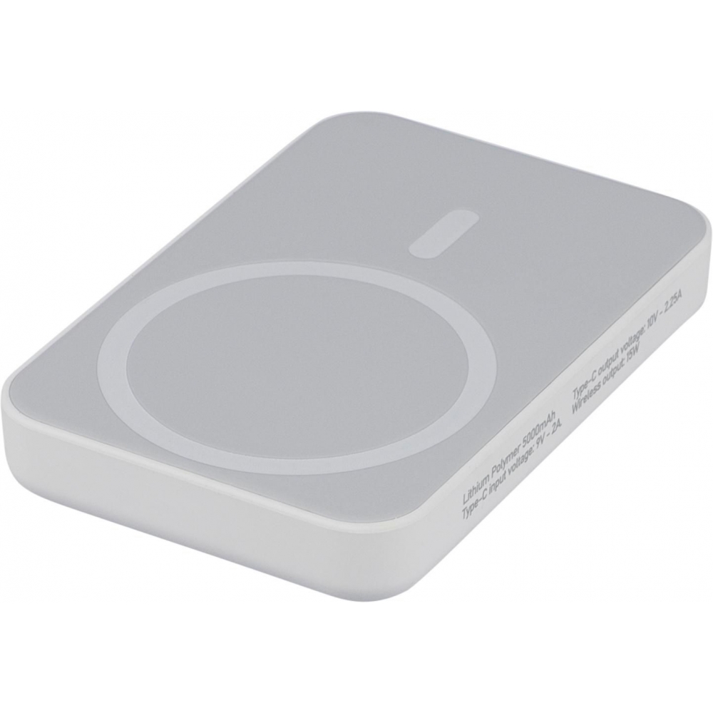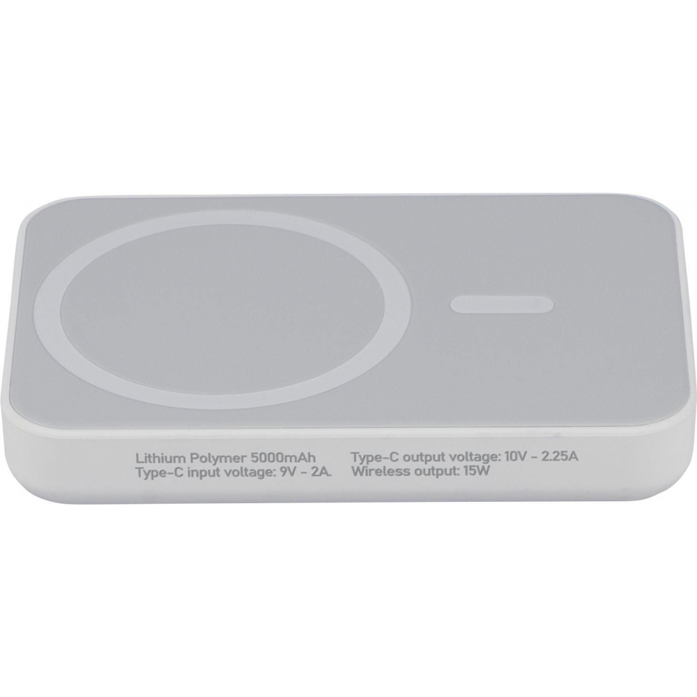 Artikel-Nr: GIV1298467002Recycelte ABS-Powerbank verfügt über ein kabelloses Ladegerät, einen 5.000-mAh-Li-Ionen-Akku und einen 15-W-magnetischen kabellosen Ladeausgang (MagSafe-kompatibel). Der Typ-C-Eingang unterstützt bis zu 20 W und der Typ-C-Ausgang DC5V/3A, DC9V/2,22A und DC12V/1,67A. Sie ist mit einem Überhitzungs-, Kurzschluss-, Überspannungs- und Überstromschutz ausgestattet. Sie schaltet sich bei Überhitzung automatisch ab. Sie enthält einen zusätzlichen Metallring mit Kleberückseite, um das kabellose Laden von Nicht-MagSafe-Geräten zu unterstützen. An der Seite befindet sich ein Etikett mit dem Recycled ABS (RABS)-Logo. Sie ist einzeln verpackt in einem braunen Karton mit Seidenpapier im Inneren.