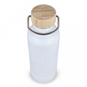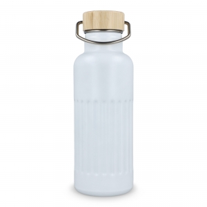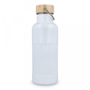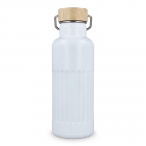 Artikel-Nr: ART98699N0001Recycelte Edelstahl-Isolierflasche mit 500 ml Fassungsvermögen und auslaufsicherem Bambusdeckel. Der Flaschenkörper hat ein modernes Streifenmuster, in einer Geschenkbox verpackt.