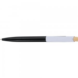 Artikel-Nr: GIV1349499001128Recycelter ABS-Kugelschreiber mit Bambus-Druckknopf und weißem Clip. Mit recyceltem Logo im In-Mould-Verfahren. Ungefähre Schreiblänge 600 Meter. Blaue Tinte.