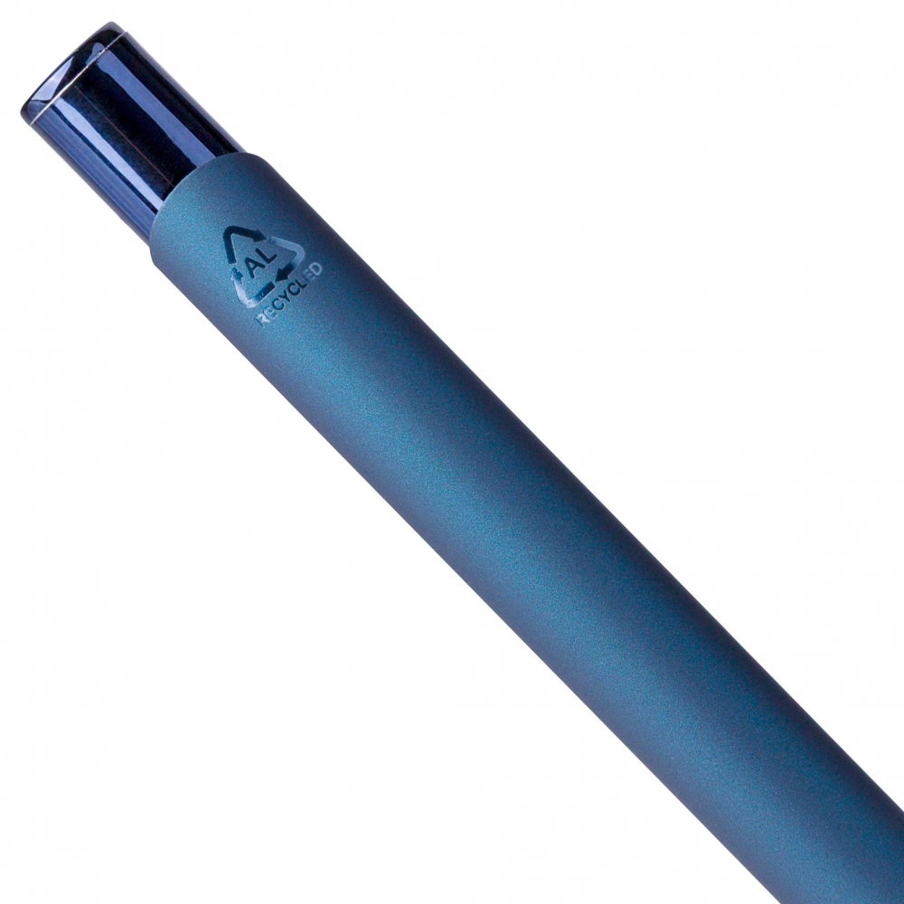 Artikel-Nr: GIV1349495871128Gummierter Kugelschreiber aus recyceltem Aluminium mit glänzendem UV-Kunststoffdrücker, UV-verchromter Kunststoffspitze und UV-beschichtetem Metallclip, alles in passenden Farben. Nach der Gravur entsteht ein glänzender Spiegeleffekt in der Farbe des Stiftes. Inklusive eingraviertem Recycling-Logo. Ungefähre Schreiblänge: 800 m. Blaue Tinte.