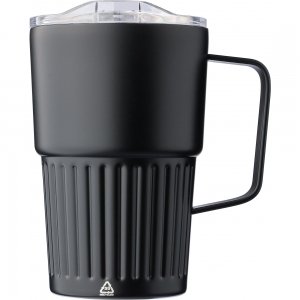 Artikel-Nr: GIV1267377001Recycelter doppelwandiger Trinkbecher aus Edelstahl (450 ml). Die Innenseite besteht aus Edelstahl 304, die Außenseite aus Edelstahl 201. Er verfügt über einen geriffelten Henkel und einen stabilen Henkel. Mit AS-Deckel mit Schiebeverschluss. Auf dem Becher ist ein graviertes Recycling-Logo zu sehen. Der Becher ist einzeln in einem braunen Karton verpackt.