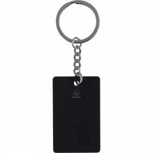 Artikel-Nr: GIV1349498001Recycelter, gummierter Schlüsselanhänger aus Edelstahl mit Metallring in rechteckiger Form. Mit eingraviertem Recycling-Logo, das nach der Gravur einen glänzenden Spiegeleffekt aufweist. Einzeln verpackt in einem Kraftpapier-Umschlag.