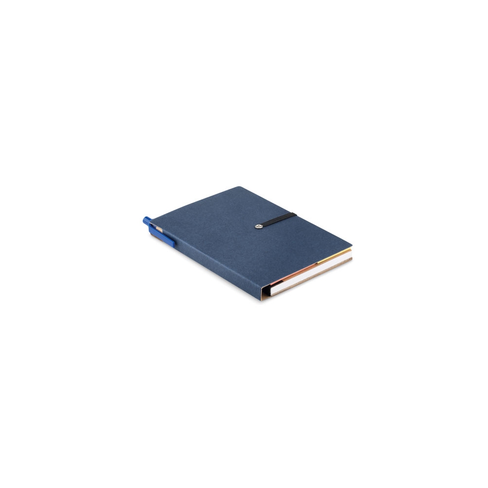 Artikel-Nr: OCBMO9213-04Notizbuch aus recyceltem Karton. 70 Blatt (140 Seiten) liniertes Papier. Mit 2 Haftnotizblöcken und 4 farbigen Markerblöcken. Elastikbandverschluss. Druckkugelschreiber aus recyceltem Karton (ABS Spitze, Clip, Drücker). Schwarze Tinte. FSC®-certified | FSC MIX, P7.1, FSC-C213206