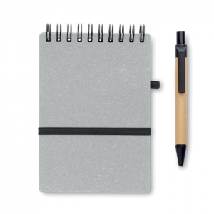 Artikel-Nr: OCBMO2481-07Notizbuch mit Cover aus Recyclingpapier und PU (70% Recyclingpapier, 30% PU). Spiralbindung. 70 Blatt (140 Seiten) liniertes Recyclingpapier. Elastisches Verschlussband und Stiftschlaufe. Inkl. Druckkugelschreiber aus Recyclingpapier / ABS. Blaue Tinte. FSC®-certified | FSC MIX CREDIT, P7.1, FSC-C213206
