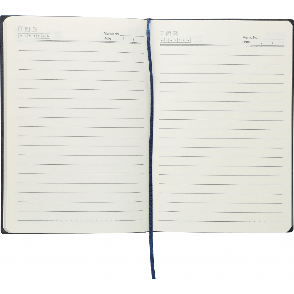 Artikel-Nr: GIV1274007018Recyceltes PU-Notizbuch (ca. A5) mit festem Einband und Kordeloptik auf dem oberen Teil der Vorder- und Rückseite. Mit Lesezeichenband und 100 linierten Seiten aus (80 g / m²) Papier. Mit geprägtem Recycling-Logo auf der Rückseite.