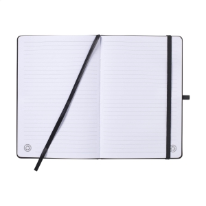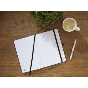 Artikel-Nr: CLP263193-001A5-Notizbuch mit Hardcover aus recyceltem PU und ca. 96 Blatt/192 Seiten weißem, liniertem, GRS-zertifiziertem Papier (70 g/m²). Mit gebundenem Rücken, Verschlussgummiband und Seidenleseband. GRS-zertifiziert. Recyceltes Material insgesamt: 93%.