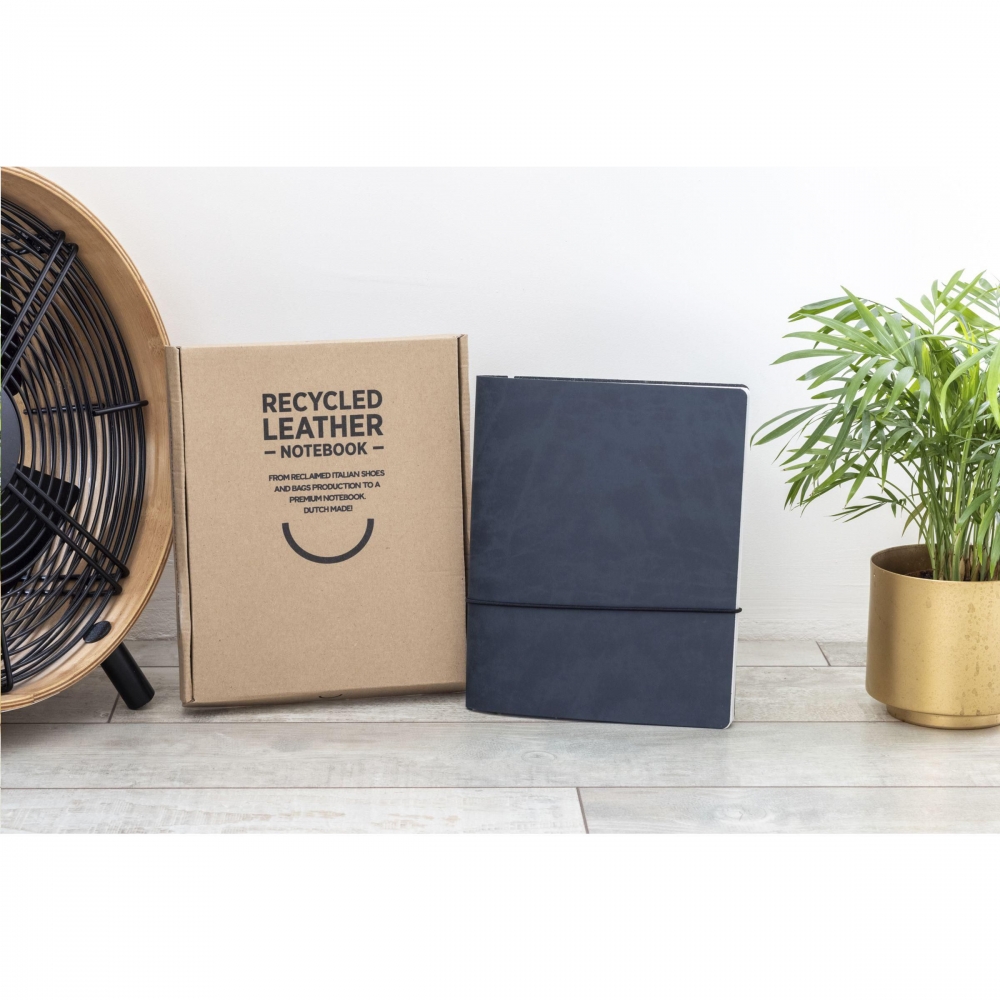 Artikel-Nr: CLP269139-307A5-Notizbuch mit Einband aus recycelten italienischen Lederabfällen und natürlichen Bindemitteln. Ein Produkt der Marke MADE out of. Das recycelte Leder ist sehr robust, hat ein wunderschönes mattes Aussehen und riecht nach Leder. Die farbige Deckschicht besteht aus einer sehr dünnen PU-Beschichtung auf 100%iger Wasserbasis. Der herausnehmbare, nachfüllbare Inhalt (Reuse & Reduce) dieses Notizbuchs mit Verschlussgummi besteht aus ca. 120 Blatt/240 Seiten liniertem, recyceltem Papier (90 g / m²). Der Inhalt wird mit einem stabilen Gummiband an Ort und Stelle gehalten. Handgefertigt. Niederländisches Design. Hergestellt in den Niederlanden. Made Out Of ist B-Corp-zertifiziert; die Kollektion wird nach den höchstmöglichen ökologischen und sozialen B-Corp-Standards hergestellt.