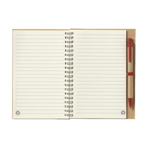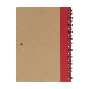 Artikel-Nr: CLP364260Notizbuch aus recyceltem Material mit ca. 70 Blatt/140 Seiten cremefarbenem, liniertem Papier (70 g / m²), kartoniertem Umschlag. Gebunden in einer starken, metallenen Spiralbindung. Inkl. blauschreibendem Kugelschreiber.
