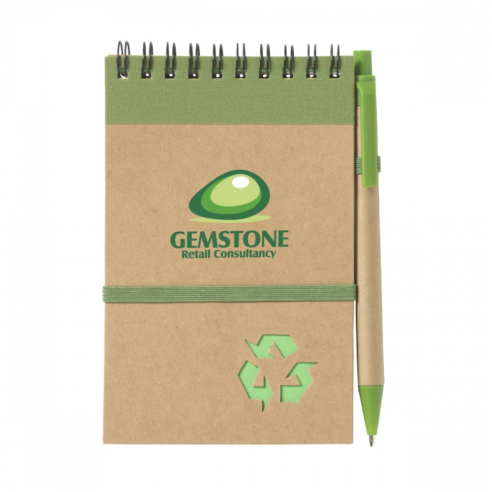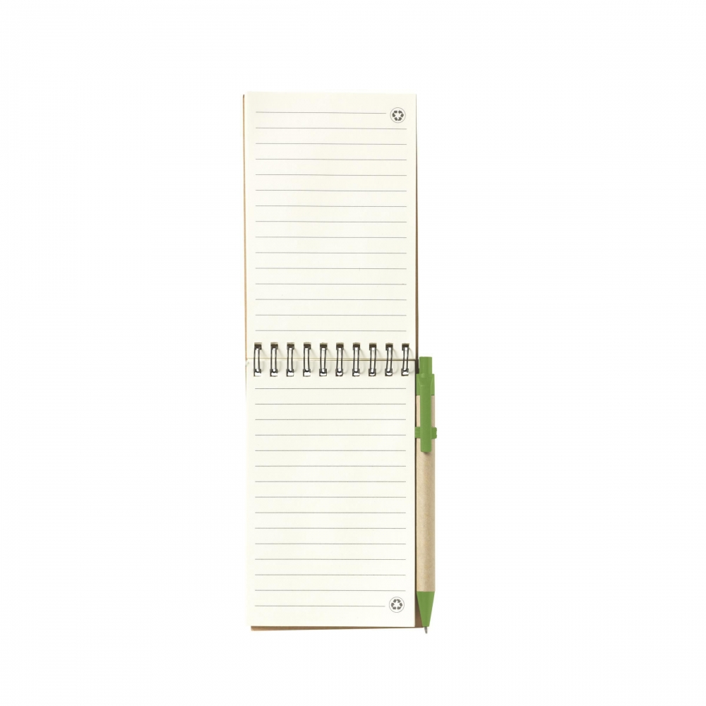 Artikel-Nr: CLP263641-004Notizbuch aus recyceltem Material, mit ca. 70 Blatt/140 Seiten cremefarbenem, liniertem Papier (70 g/m²) und Kartonumschlag mit elastischem Verschluss. Gebunden mit einer stabilen Spiralbindung aus Metal. Inkl. blauschreibendem Kugelschreiber. FSC Mix zertifiziert.