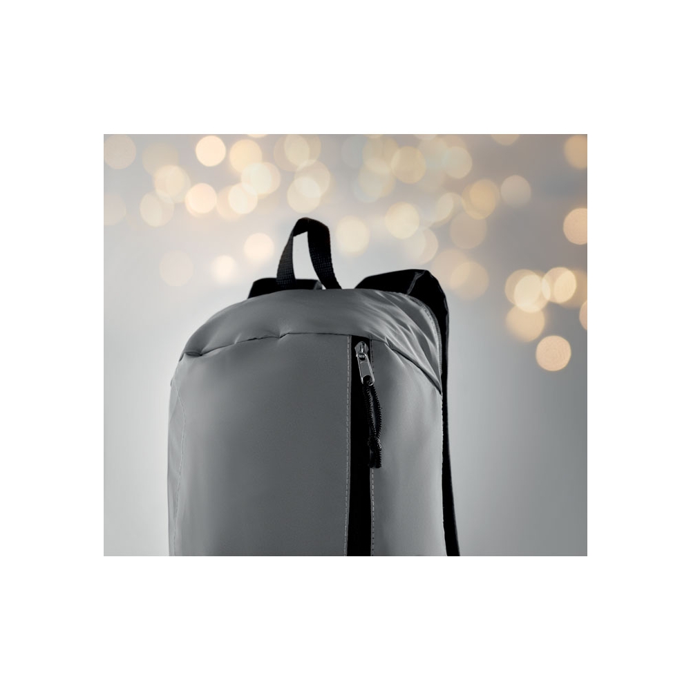 Artikel-Nr: OCBMO6131-16Rucksack mit Front aus hoch reflektierendem Polyester. Fronttasche mit Reißverschluss. Gepolsterte Rückseite. 600D Polyester.