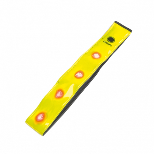 Artikel-Nr: D533AL3015gelb, EN 13356, mit Klettverschluss, 4 rot blinkende LEDs, 3M Folie, Rückseite mit schwarzem Velourstoff überzogen, ca. 43 x 3 cm, 500 Stück im Karton, UV 100 Stück, bezüglich der Druckfläche rufen Sie uns bitte an