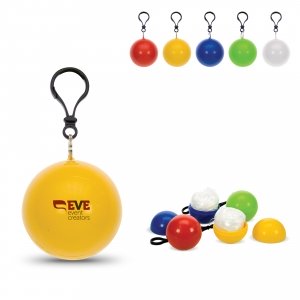 Artikel-Nr: ART90449N0032Ein Regenponcho verpackt in einer Kunststoffkugel. Sehr praktisch, wenn man unterwegs vom Regen überrascht wird. Den Schlüsselanhänger können Sie leicht an einem Fahrrad oder einer Tasche befestigen.