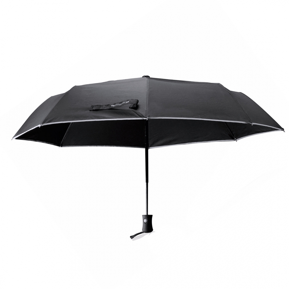 Artikel-Nr: KTO17154002000Winddichter Taschenschirm von Antonio Miró mit 8 Panelen aus robustem Pongee-Material und elegantem Design in Schwarz mit weißem Rand. Mit einem Durchmesser von 95 cm, automatischem Öffnungs- und Schließmechanismus und Metallstäben in Schwarz sowie Klettverschluss und ergonomischem Griff mit Trageschlaufe. Präsentiert in einer individuellen, farblich passenden Hülle mit dem Markenlogo.