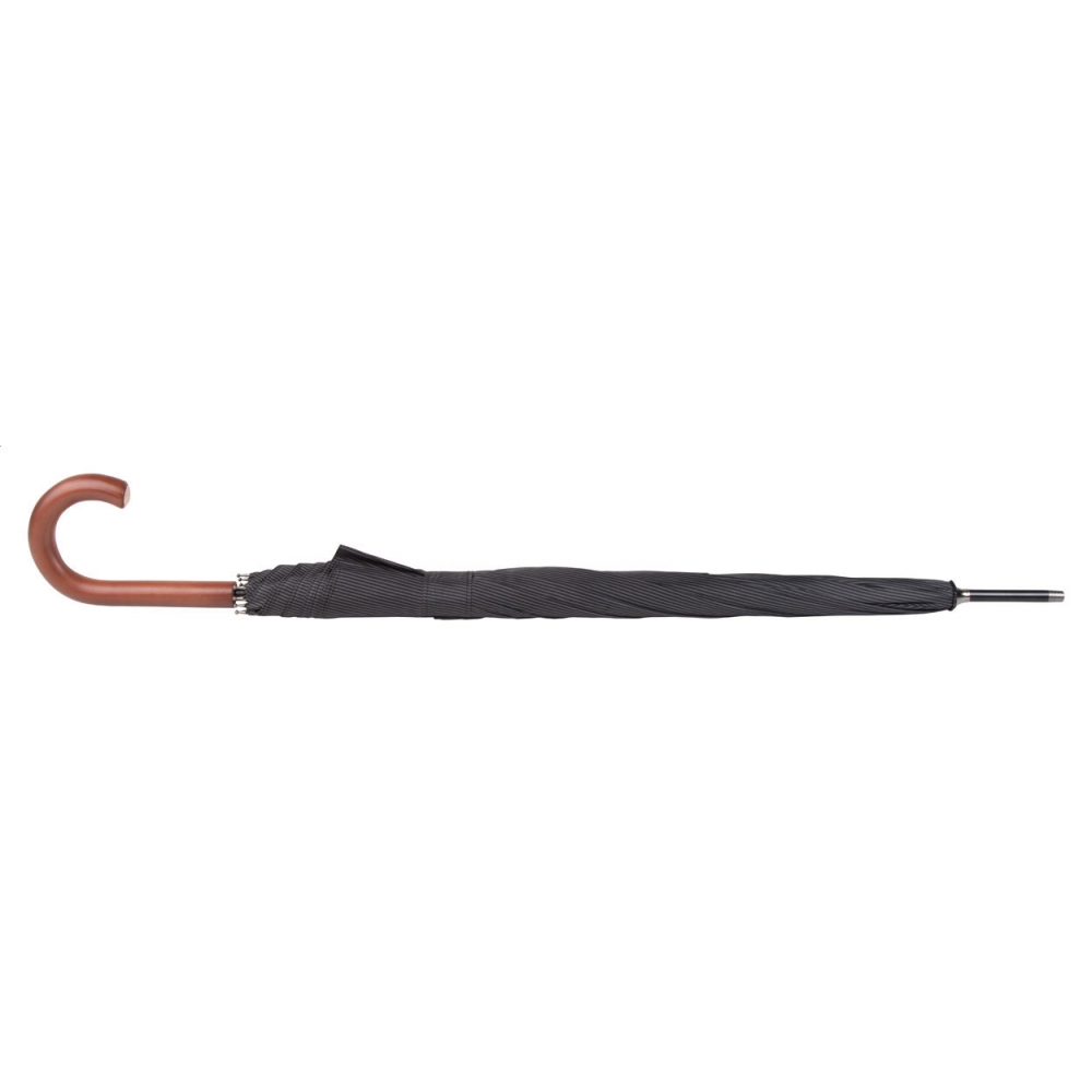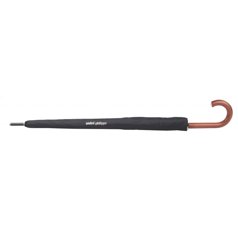Artikel-Nr: AND808410-10Automatischer Windproof-Stockschirm mit 8 Segmenten, Bespannung in Nadelstreifen (schwarz / grau), Holzgriff, Metallrahmen und Fiberglasspeichen. Material: 190T Pongee. Marke: André Philippe.