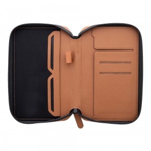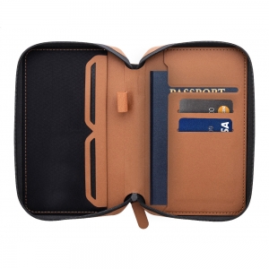 Artikel-Nr: AND800178-09Luxuriöser Reiseorganizer und Passhülle aus recyceltem PU-Leder mit Reißverschluss. Mit mehreren Innentaschen für Dokumente, Karten und Reiseutensilien.