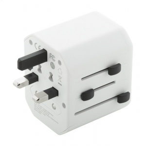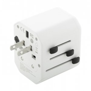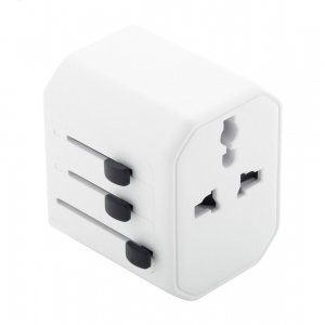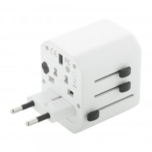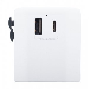 Artikel-Nr: AND864046-01Universeller, weltweiter Reiseadapter aus ABS-Kunststoff mit integrierten Steckern für USA, Europa, Großbritannien und Australien. Mit 1 USB- und 1 USB-C-Ladeanschluss.