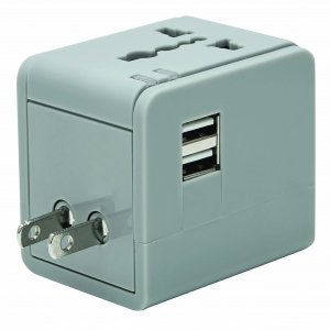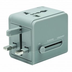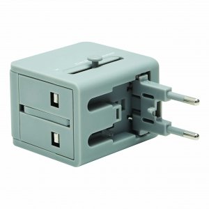 Reiseadapter TRAVEL MATE: mit Umschaltregler für UK, Europa, USA, Australien und Asien (nicht geeignet für die Schweiz), ausklappbare Stecker, mit 2 USB-Ladeanschlüssen bis 2,1 A für z. B. Smartphone, Tablets etc., Gehäuse mit gummierter Oberfläche, in farbig abgestimmter Aufbewahrungsbox, nur für nicht geerdete Geräte zu verwenden, in Box