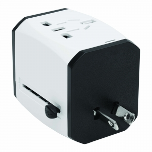 Artikel-Nr: INP56-0402712Reiseadapter TRAVEL POWER: mit Umschaltregler für UK, Europa, USA, Australien und Asien (nicht geeignet für die Schweiz), ausklappbare Stecker, mit 3 USB-Ladeanschlüssen (2 Ports USB Typ A und 1 Port USB Typ C, Gesamt-Ausgangsleistung max. 2,4 A) für z. B. Smartphone, Tablets etc., nur für nicht geerdete Geräte zu verwenden, in Box