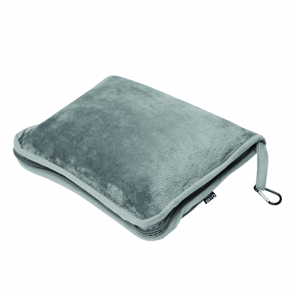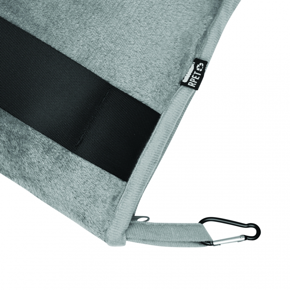Artikel-Nr: INP56-0604118Reisedecke PURENAP: aus 100% rPET, weiches Wohlfühlerlebnis durch Plüschfleece, waschbar, in Tasche mit Reißverschluss zum Verschließen, Schlaufe mit kleinem Karabinerhaken (der Karabiner ist NICHT als Sicherung beim Klettern geeignet) und Gurt für Reporterfunktion, Decke lässt sich zusammengefaltet in der Tasche optimal als Kissen verwenden