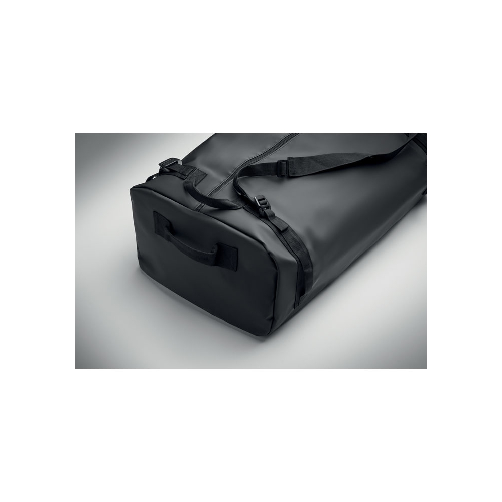 Artikel-Nr: OCBMO2579-03Große Sport- oder Reisetasche, auch als Rucksack verwendbar. 50C-Plane. Innenfach mit Reißverschluss. Abnehmbarer, verstellbarer Schultergurt. Futter aus RPET.