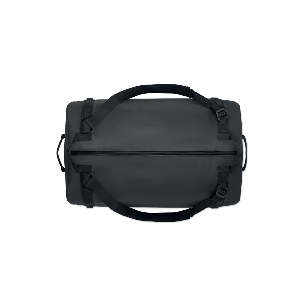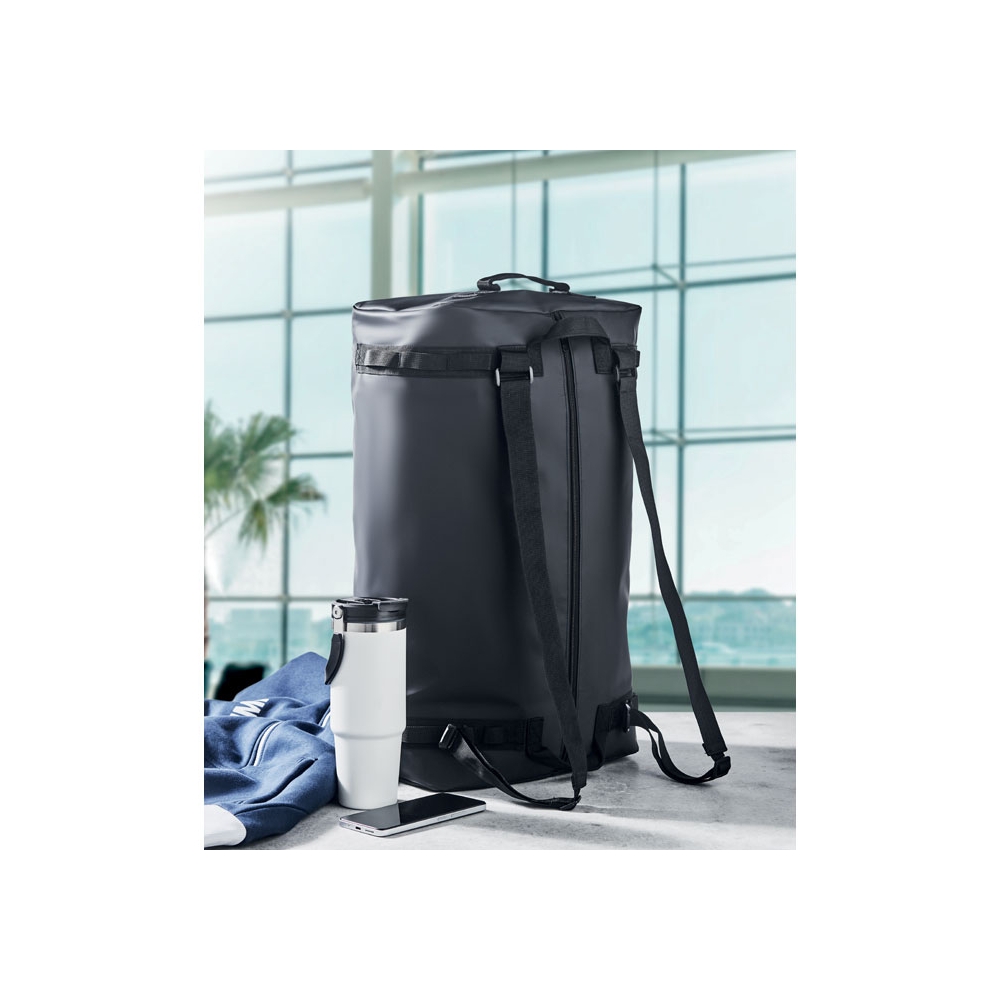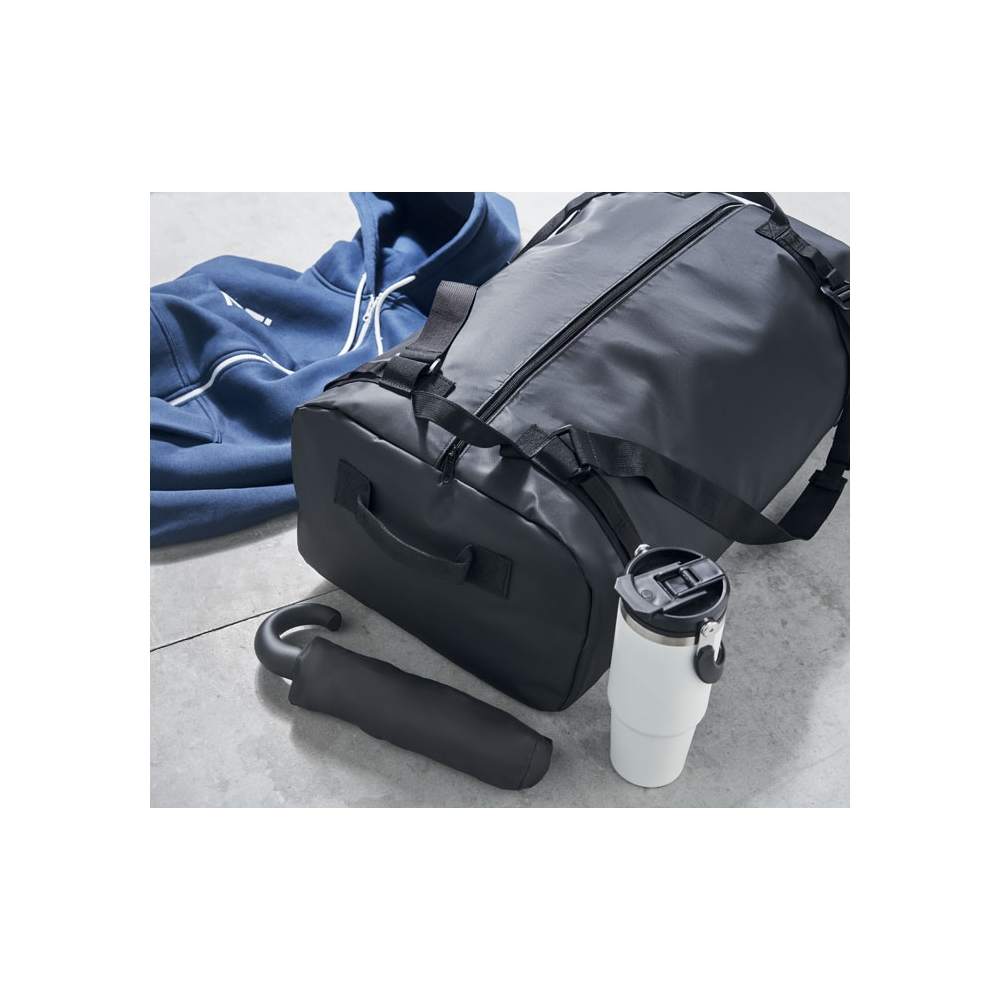 Artikel-Nr: OCBMO2579-03Große Sport- oder Reisetasche, auch als Rucksack verwendbar. 50C-Plane. Innenfach mit Reißverschluss. Abnehmbarer, verstellbarer Schultergurt. Futter aus RPET.