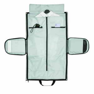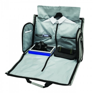 Artikel-Nr: INP56-2256702Reisetasche MILANO mit integriertem Kleidersack: 1 Reißverschluss-Hauptfach, 1 Reißverschluss-Seitentasche, 2 verstärkte Tragegriffe, verstell- und abnehmbarer Gurt mit Schulterpolster, Reporterfunktion auf der Rückseite, 4 Reißverschlüsse an den Seiten, um die Tasche vollständig zu öffnen, 1 Metall-Ring zum Aufhängen des Kleidersacks, innen 1 Reißverschluss-Hauptfach mit 3 Gurtbandschlaufen, um Bügel zu befestigen, 2 seitliche Einsteckfächer, 2 kleine Reißverschlussfächer und 1 großes Reißverschlussfach