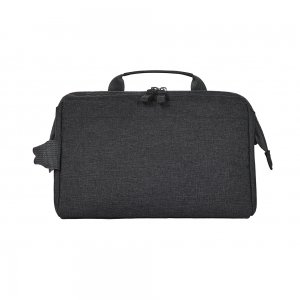 Artikel-Nr: HLF1816500-717Formschöne Reißverschlusstasche mit stabiler Metallbügelöffnung zum Aufstellen oder -hängen; rPET-Obermaterial; großes, gepolstertes Hauptfach mit diversen Organizer-Elementen; Reißverschlussvortasche; Handgriff