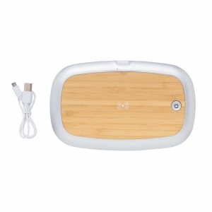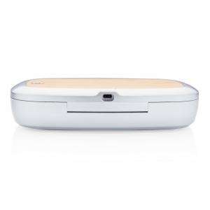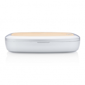Artikel-Nr: XND301132Mit diesem multifunktionalen UV-C Sterilisator beseitigen Sie bis zu 99,9% der Baktieren. Legen Sie einfach Ihre Ohrhörer, Ihren Schmuck, Ihre Uhr oder Gesichtsmaske ein und sterilisieren Sie sie so mithilfe der UV-C Technologie. Wählen Sie zwischen dem Quick-Clean in 90 Sekunden oder dem Komplettprogramm mit 5 Minuten Länge und starten so die 2 Quecksilber-freien UV-C LED's - sie haben eine Lebensdauer von bis zu 10.000 Stunden. Auf dem Sterilisator befindet sich zudem noch ein 5W Wirless Charger aus Bambus zum Laden Ihres QI-fähigen Mobilgerät. Inklusive 100cm langem PVC-freiem Type-C Kabel aus TPE-Material. Input: 5V/1.5A; Output: 5/1A - 5W. UV-C Wellenlänge 270nm-280nm