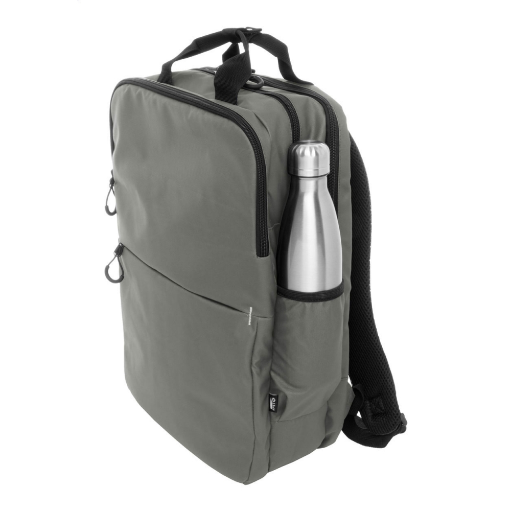 Artikel-Nr: AND808136-80Wasserdichter RPET-Rucksack mit 2 Reißverschlussfächern, 2 Reißverschluss-Fronttaschen, Seitentaschen und gepolstertem Laptopfach (16"). Mit Trolley-Gurt, gepolstertem Rücken und Schultergurten. Material: PU-beschichtetes 600D RPET-Polyester. Mit RPET-Label.