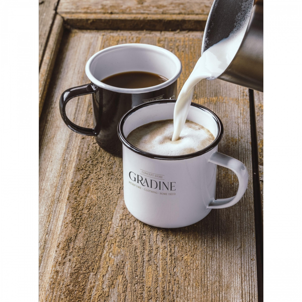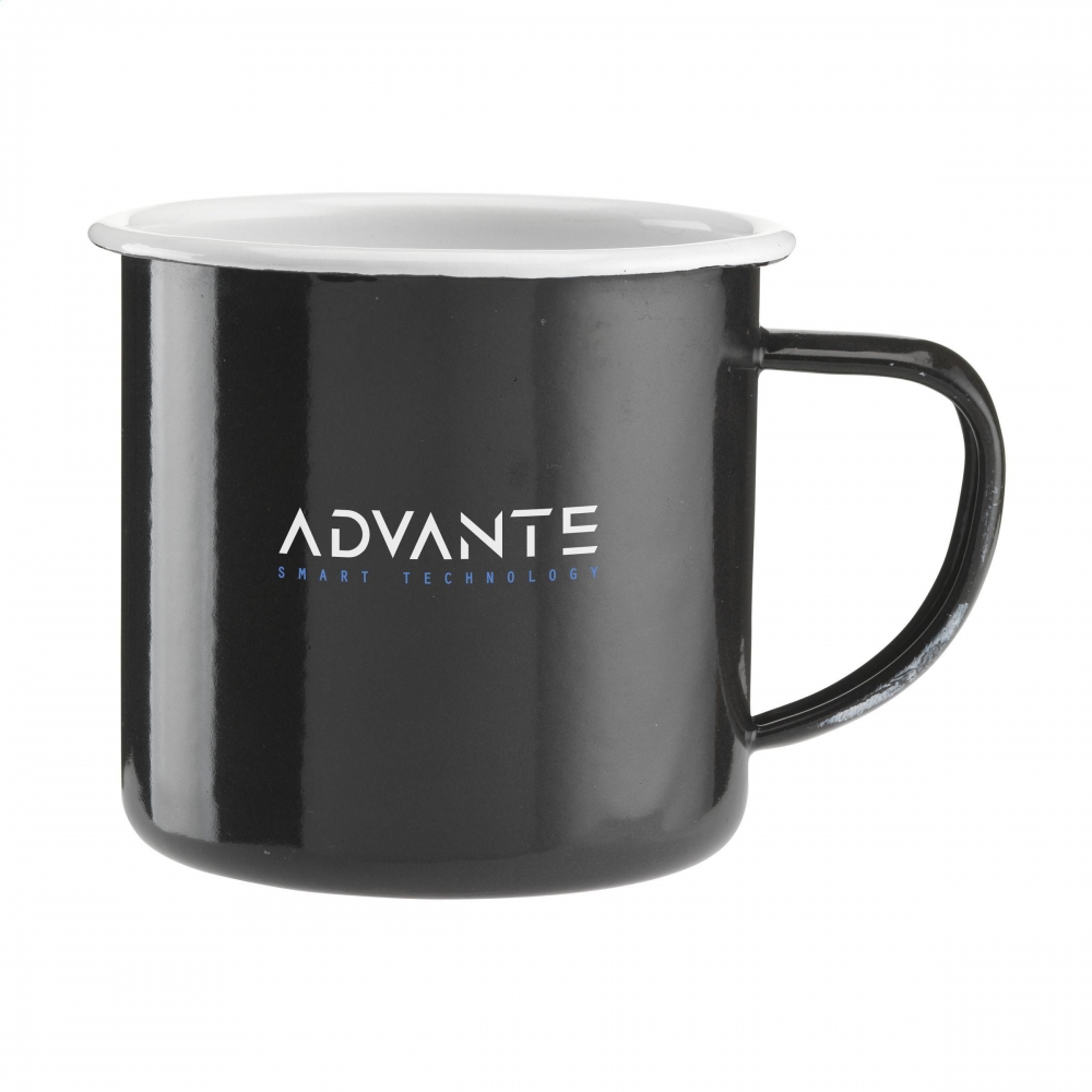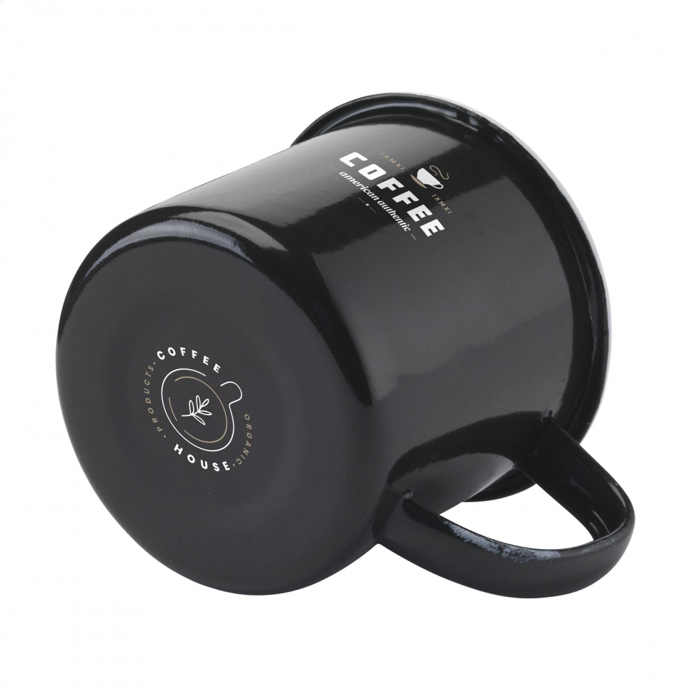Artikel-Nr: CLP260853-040Emaillierter Becher. Ein Design im beliebten Retro-Stil. Um die Retrooptik zu betonen, hat die Tasse Unvollkommenheiten. Fassungsvermögen 350 ml.