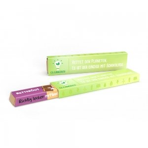 Artikel-Nr: MGN07039-0001In der Schokoladenproduktion wird bei einem Sortenwechsel die gesamte Anlage mit Schokolade gereinigt. Dieses Abfallprodukt wird gerettet und zu der leckeren Mixschokolade verarbeitet. RETTERGUT Mixschokolade Riegel im individuell veredelbaren Werbeschuber aus FSC®-zertifiziertem Karton.