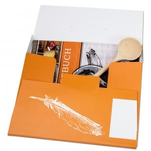 Artikel-Nr: HOP16.10091.00-1Tauchen Sie ein in die kulinarische Welt des 18. Jahrhunderts und entdecken Sie die Lieblingsrezepte von Johann Wolfgang von Goethe. Inspiriert von den Aufzeichnungen seiner Großmutter Lindheimer, wurden 20 traditionelle Gerichte sorgfältig an die moderne Küche angepasst. Das liebevoll gestaltete Rezeptbuch verbindet historische Einblicke mit genussvollen Rezepten, die zum Nachkochen einladen. Zwei Varianten stehen zur Auswahl: • Rezeptbuch einzeln. • Set: Ergänzt wird das Rezeptbuch durch einen Holzkochlöffel und einer ansprechend gestalteten Mappe. Veredelungsmöglichkeiten: • Standardausführung: Ab Lager lieferbar, optional mit zusätzlichem Logoeindruck. • Individuelle Gestaltung: Ab 500 Stück mit personalisierten Außenseiten für ein einzigartiges Design.