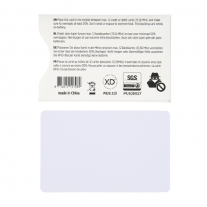 Artikel-Nr: XND820523Machen Sie jeden Geldbeutel, jedes Portemonnaie oder jeden Geldclip RFID sicher. Diese Karte zieht Energie von NFC / RFID Scannern und baut selbständig ein elektronisches Feld auf, das alle 13.56 Mhz Karten für etwaige Scanner unsichtbar macht. Es werden keine Batterien benötigt. 24/7 Schutz durch patentierte E-field-Technology gegen elektronischen Datenklau.