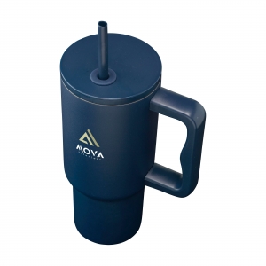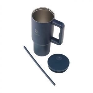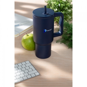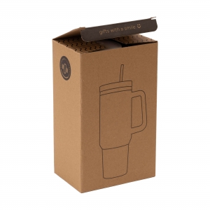 Artikel-Nr: CLP261727-536Großer, doppelwandiger Trinkbecher aus recyceltem Edelstahl mit Strohhalm. Der auffällige, robuste Becher hat einen großen Kunststoffgriff und einen Schraubdeckel mit einer Öffnung für den mitgelieferten Kunststoffstrohhalm. Dieser große Becher hält Getränke über längere Zeit auf Temperatur. Geeignet für kalte und heiße Getränke. Auch ohne Strohhalm geht die Temperatur dank der Silikondichtung im Deckel nicht verloren. Dieser Becher kann überall hin mitgenommen werden. Ideal für das Fitnessstudio oder das Büro. Dank des konischen, schmalen Bodens passt der Becher in fast jeden Becherhalter und ist somit perfekt für unterwegs. Nicht spülmaschinengeeignet. RCS-zertifiziert. Gesamtes recyceltes Material: 75%. Fassungsvermögen: 900 ml.