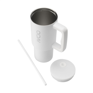 Artikel-Nr: CLP172710WoW! Großer, doppelwandiger Trinkbecher aus recyceltem Edelstahl mit Strohhalm. Der auffällige, robuste Becher hat einen großen Kunststoffgriff und einen Schraubdeckel mit einer Öffnung für den mitgelieferten Kunststoffstrohhalm. Dieser große Becher hält Getränke über längere Zeit auf Temperatur. Geeignet für kalte und heiße Getränke. Auch ohne Strohhalm geht die Temperatur dank der Silikondichtung im Deckel nicht verloren. Dieser Becher kann überall hin mitgenommen werden. Ideal für das Fitnessstudio oder das Büro. Dank des konischen, schmalen Bodens passt der Becher in fast jeden Becherhalter und ist somit perfekt für unterwegs. Nicht spülmaschinengeeignet. RCS-zertifiziert. Gesamtes recyceltes Material: 75%. Fassungsvermögen: 900 ml. Wird einzeln in einem Kraftkarton geliefert.